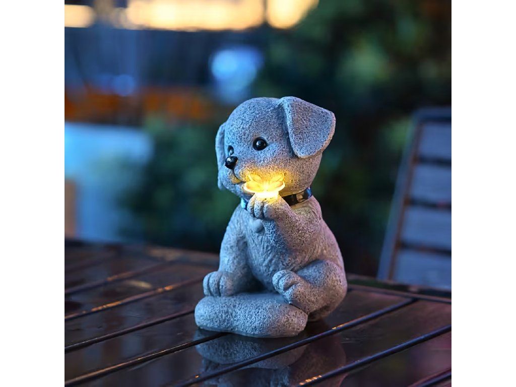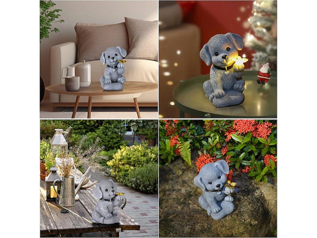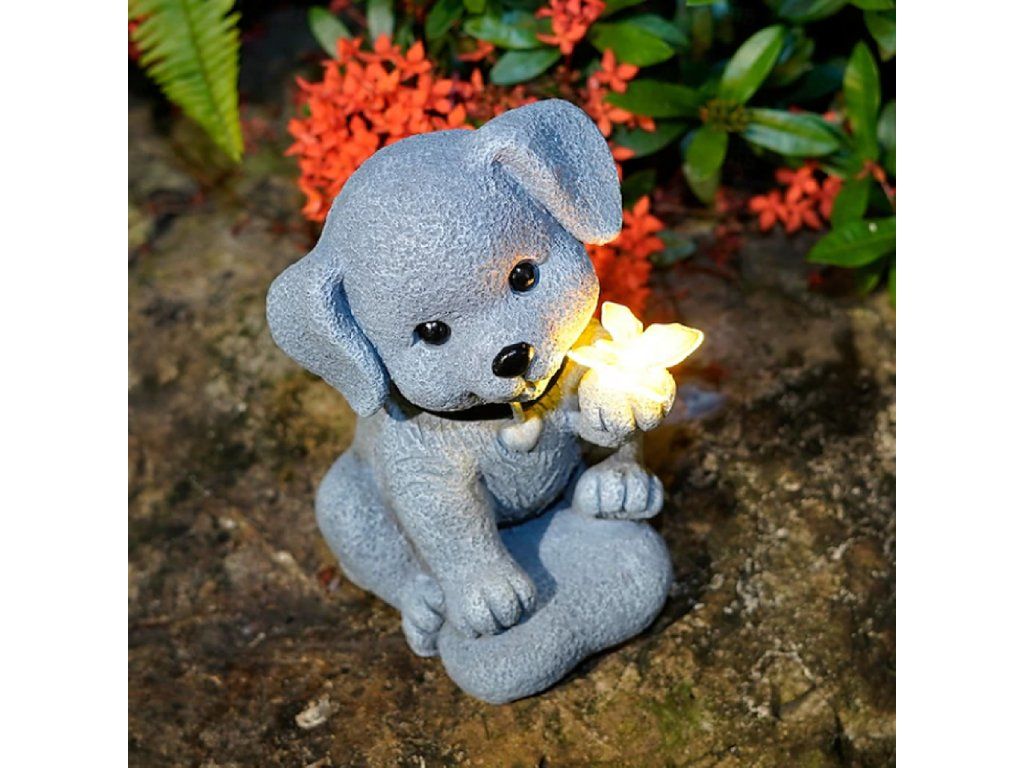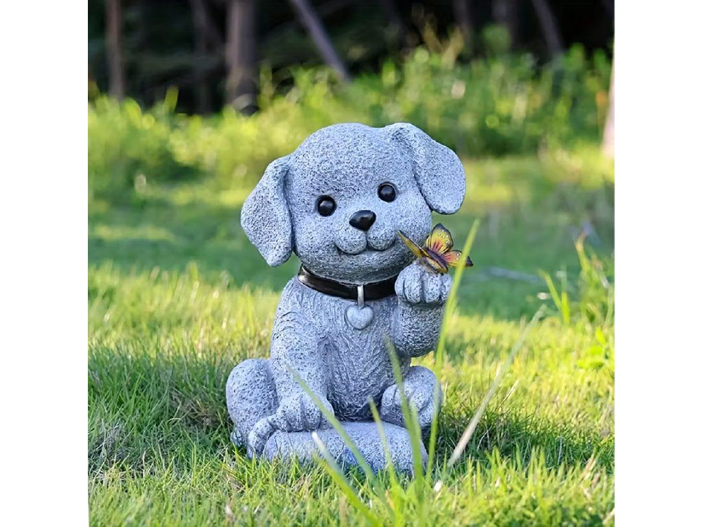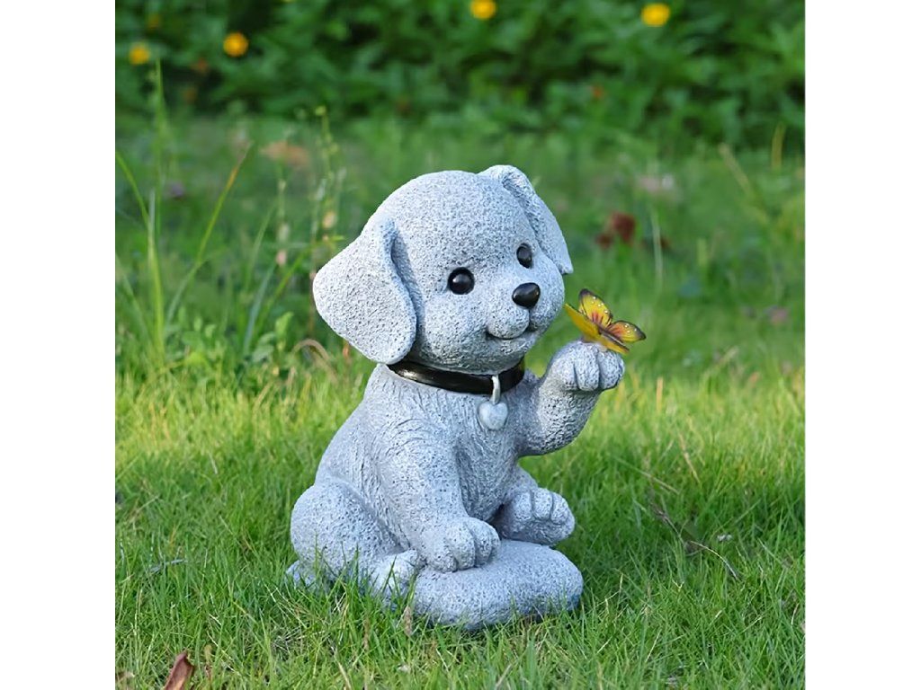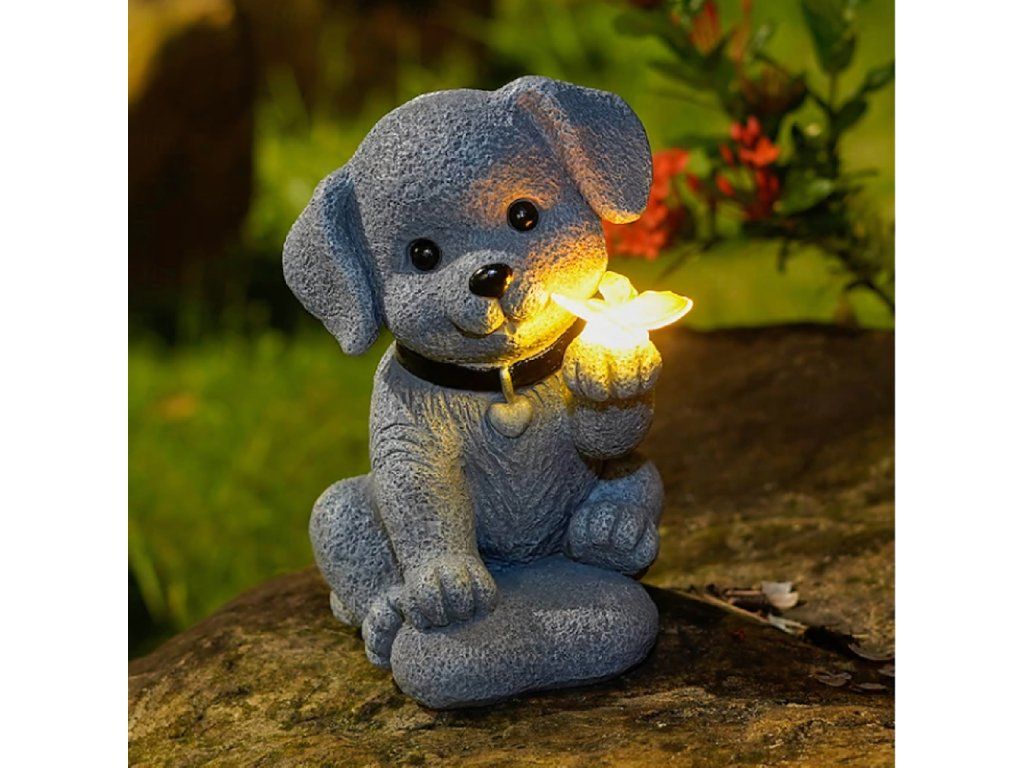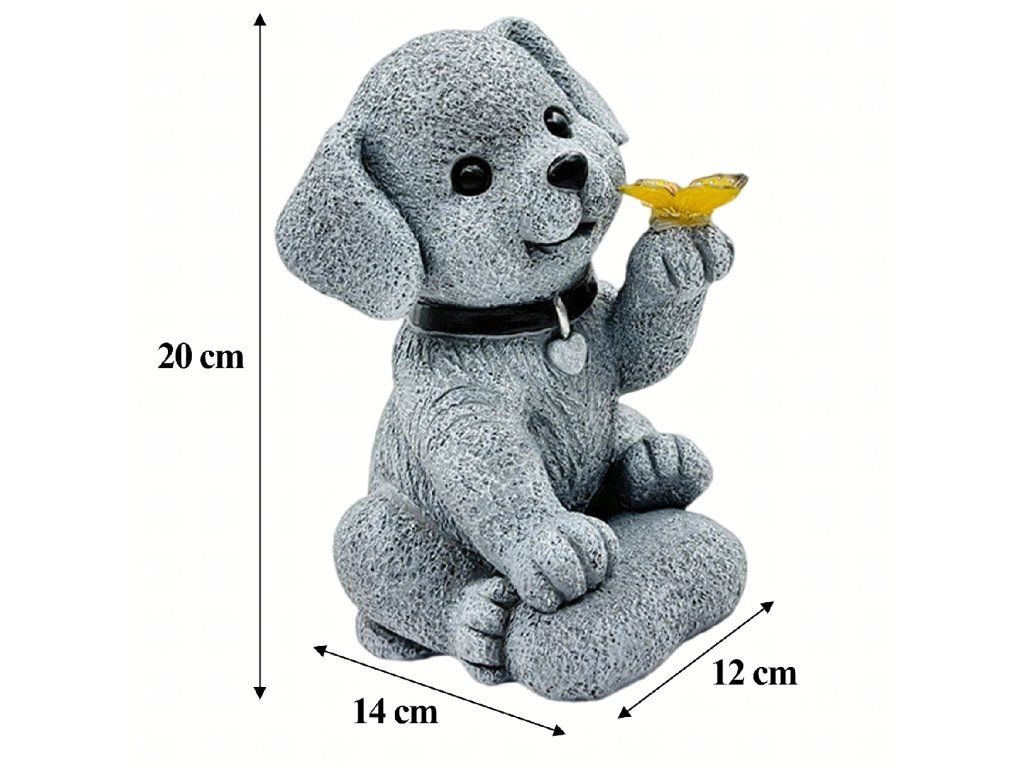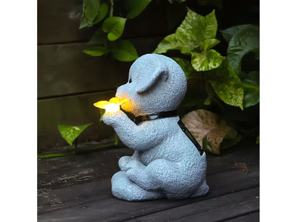 Solární zahradní lampa, dekorativní ozdoba, pes s motýlem, LED dekorace