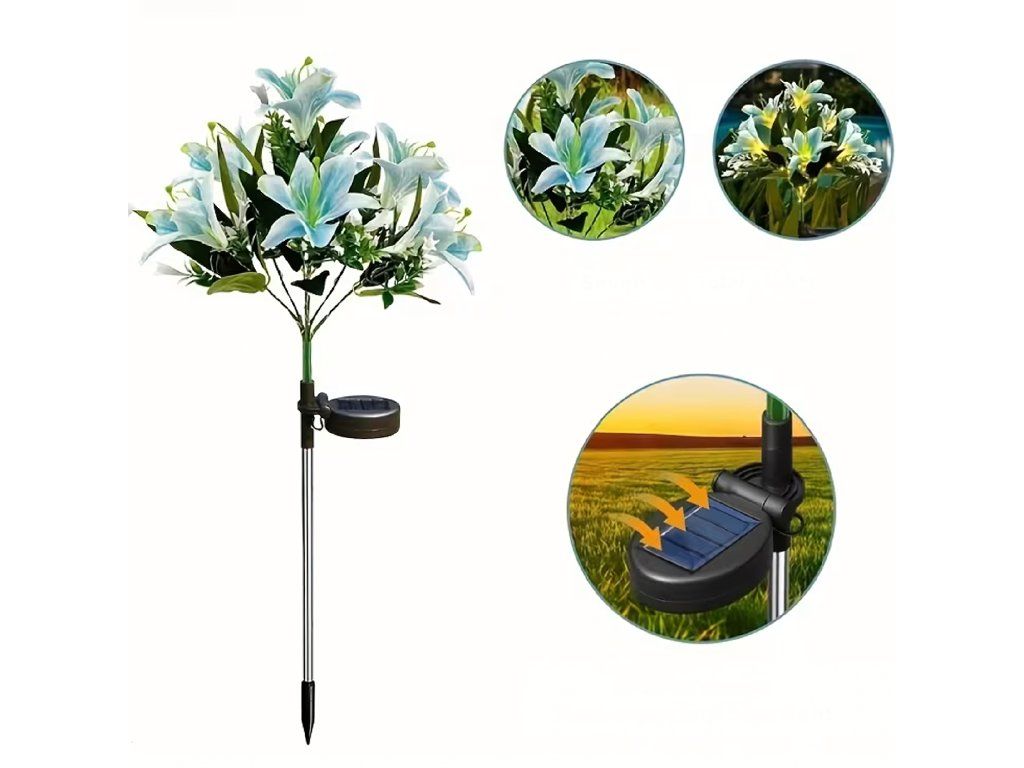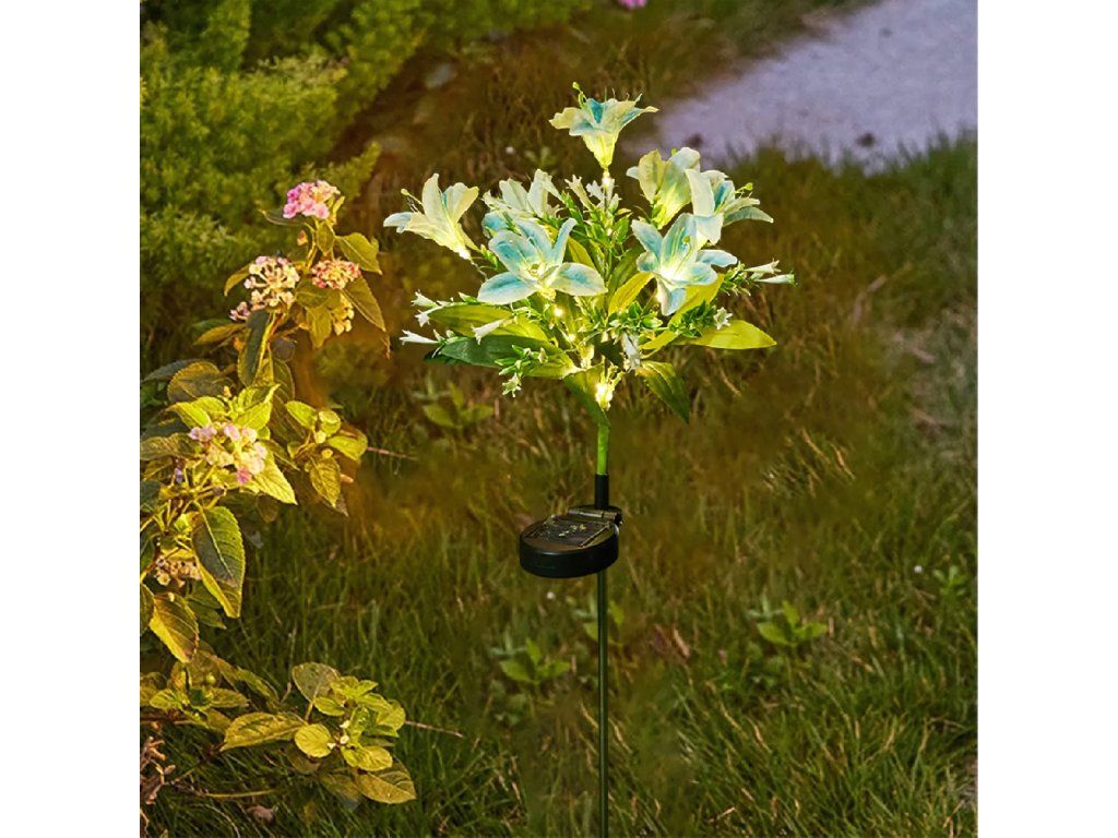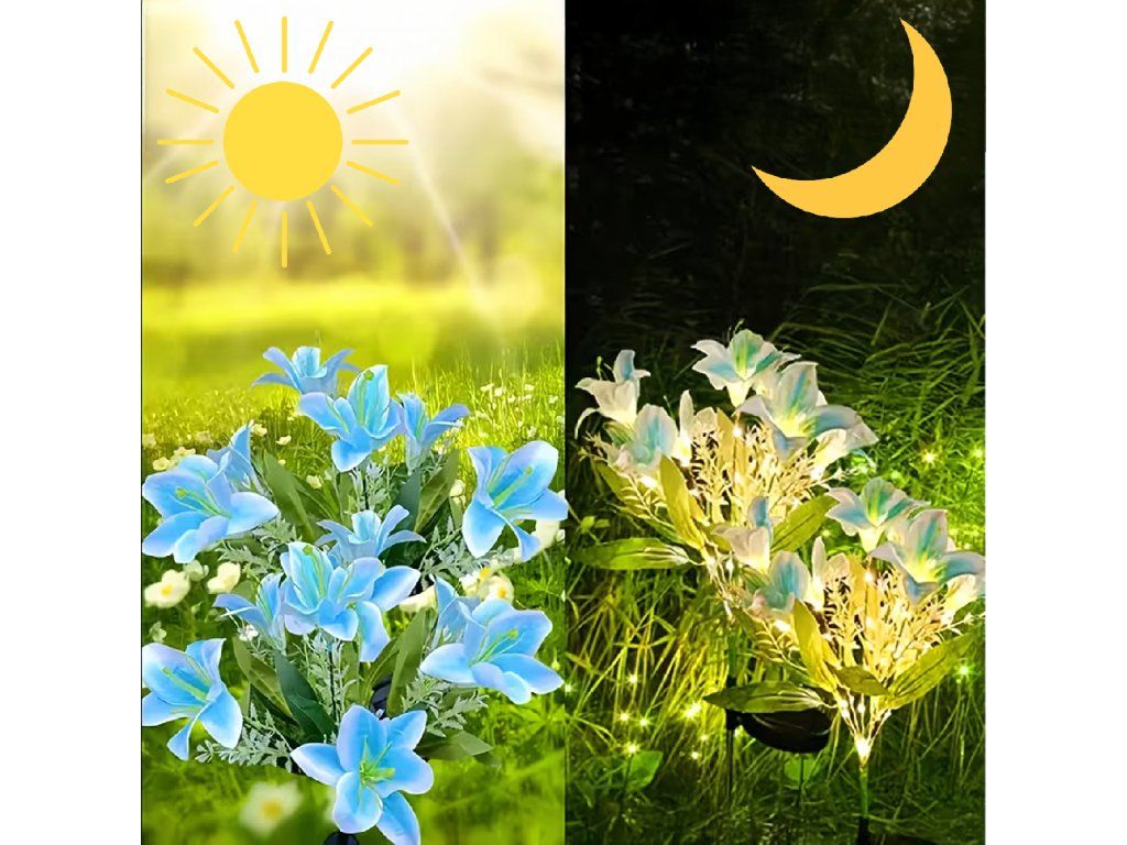 Solární zahradní lampa do země, květ lilie, lilie, dekorace, solární květiny, LED