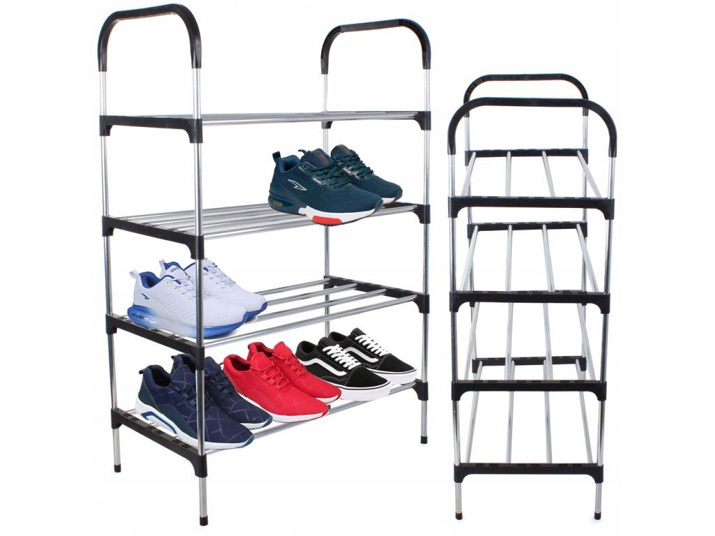 Univerzální regál na boty se skládá ze čtyř úrovní.