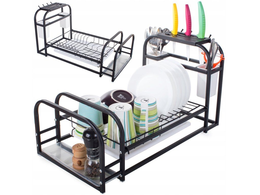 Kuchyňský sušák byl vyroben z vysoce kvalitního kovu s práškovým nástřikem. Je odolný proti poškození a působení vlhkosti vznikající při skladování mokrého nádobí.