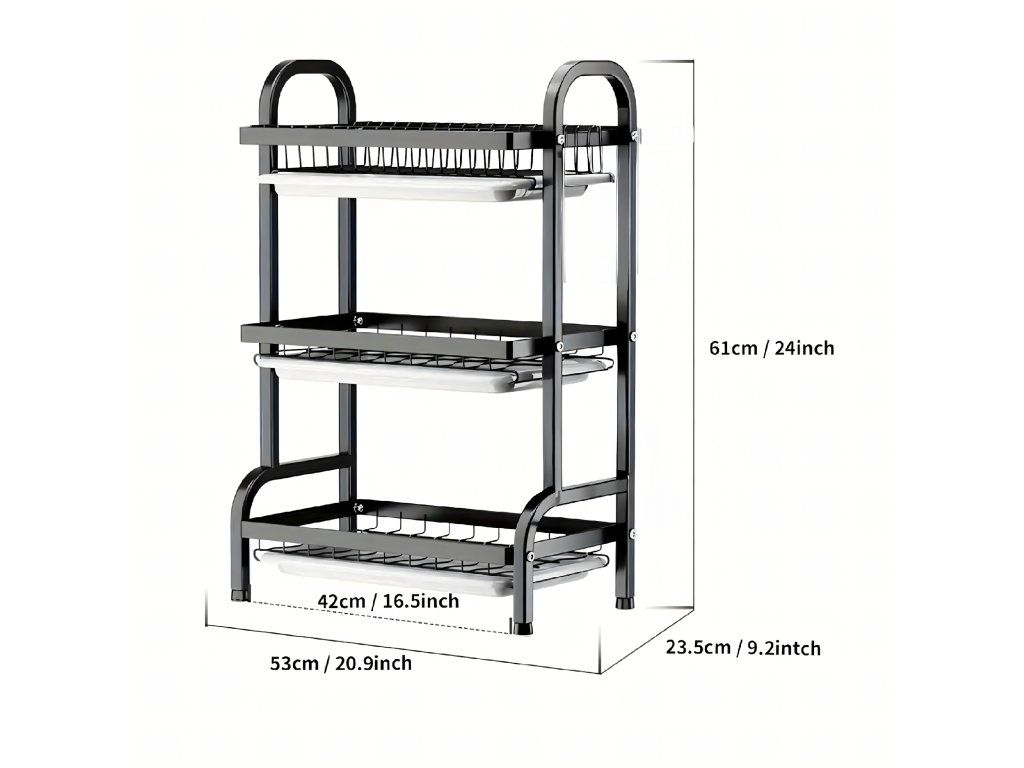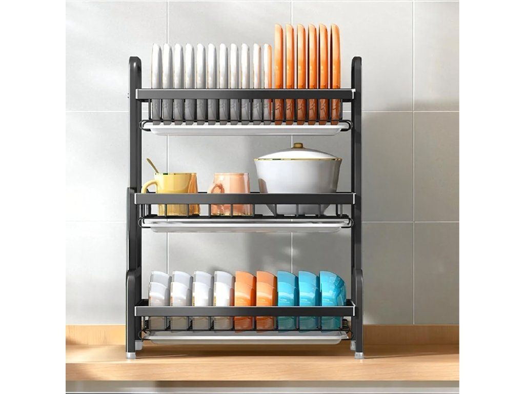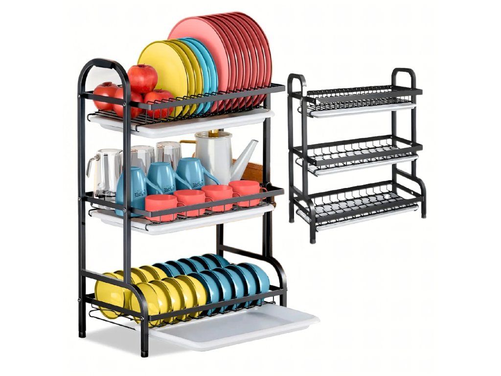 ️Sušák na nádobí Odkapávač Třípatrový Černý Velký XXL️