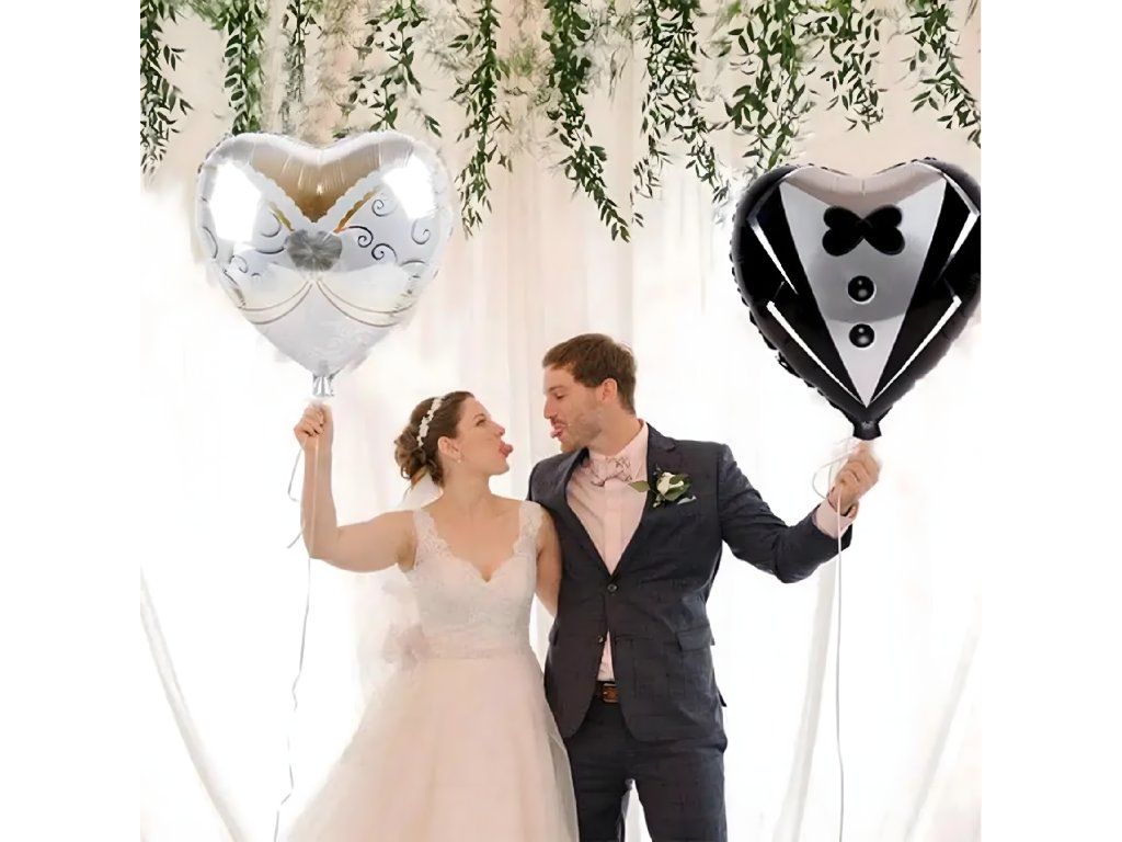 ✔️ 2 velké balóny ve tvaru šatů a obleku – cca 81,3 cm