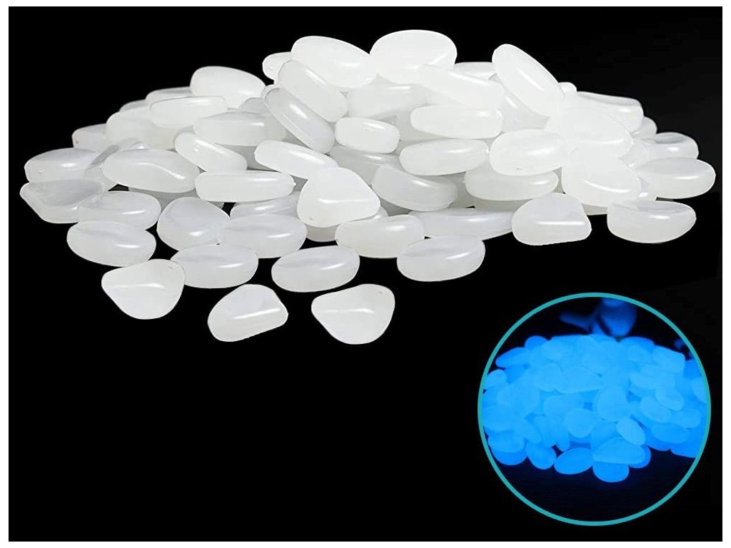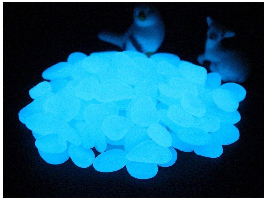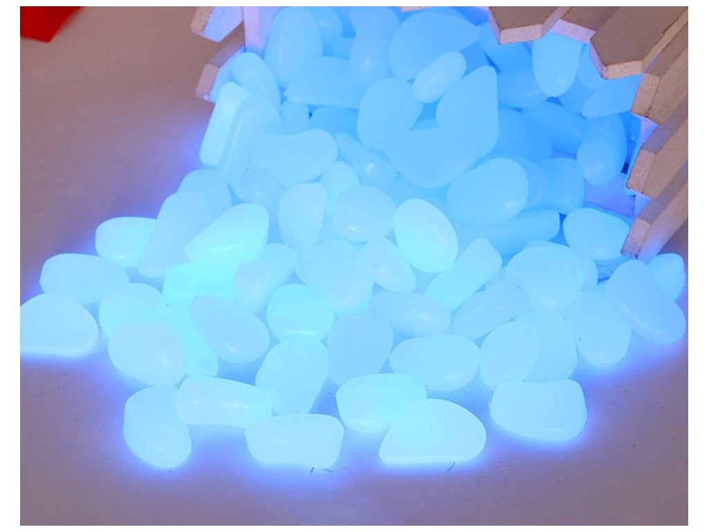 Svítící kameny, oblázky, fluorescenční kameny, 100 ks - modré