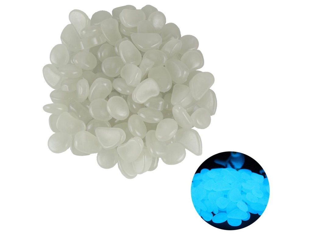 Svítící kameny, oblázky, fluorescenční kameny, 100 ks - bílé