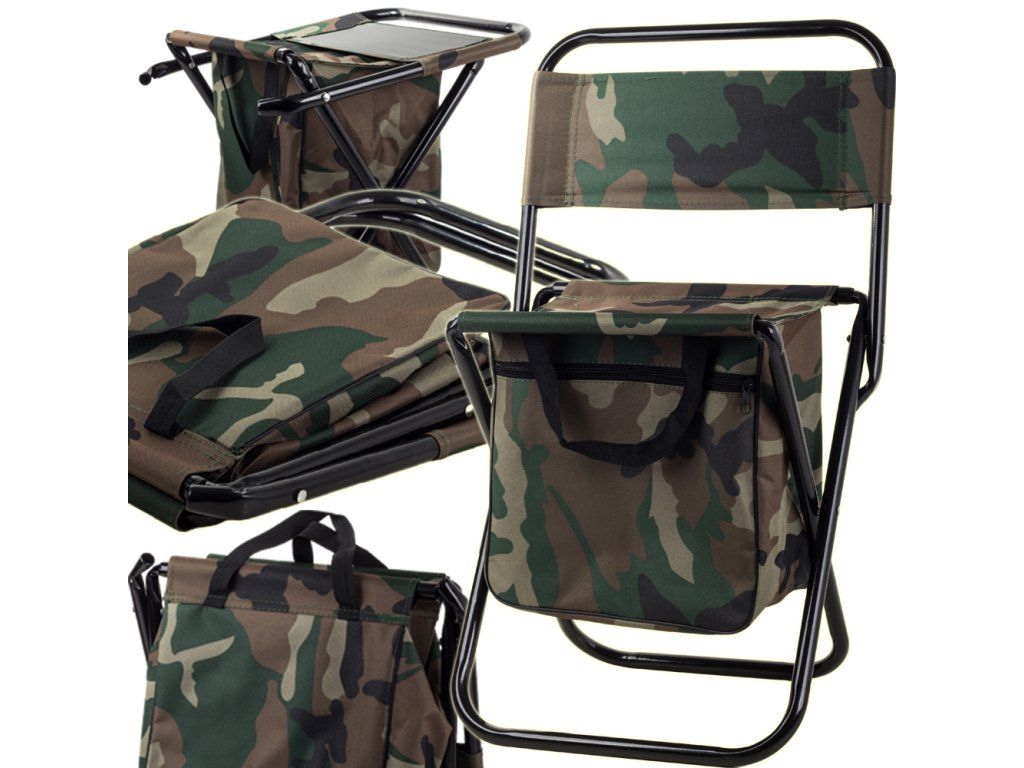 Rybářská skládací stolička s taškou, maskáčový vzor