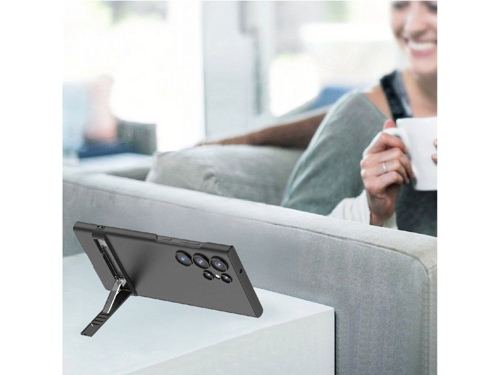 Tenké ochranné pouzdro s podstavcem pro Samsung S24 Ultra – černé