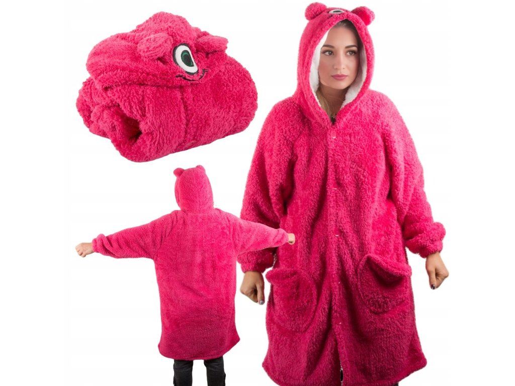 Hřejivá mikinová deka XXL s kapucí monster, tmavě růžová