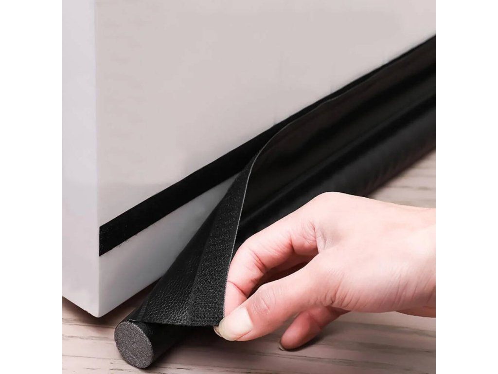 Těsnění je připevněno na pásku se suchým zipem (je součástí sady) a zabraňuje pronikání chladu mezerou dveří.