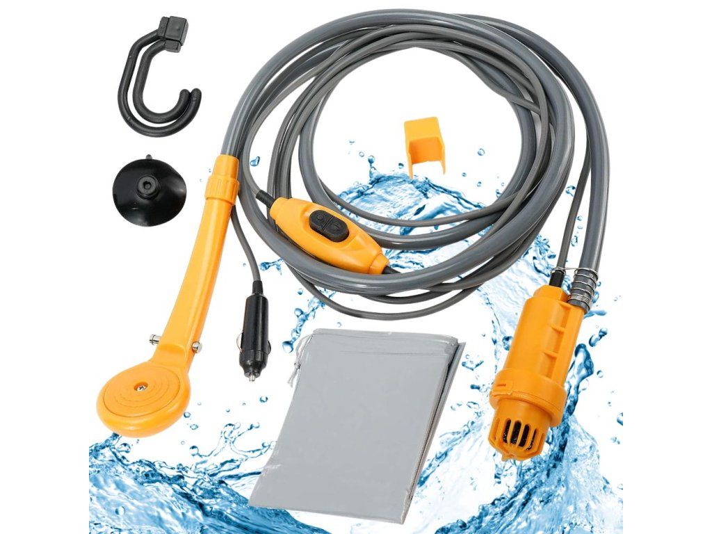 Přenosná turistická sprcha napájená z 12V zásuvky zapalovače je ideálním řešením pro kempování, stanování, dovolenou v autě nebo cestování v karavanu. Umožní vám rychle a pohodlně se kdekoli umýt - potřebujete pouze kbelík s vodou a zdroj energie. Je kompaktní, lehký a praktický - bude fungovat v každé situaci.