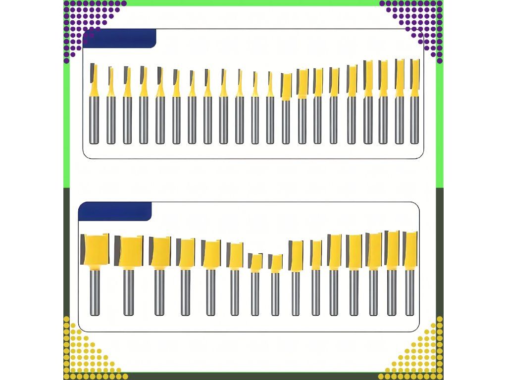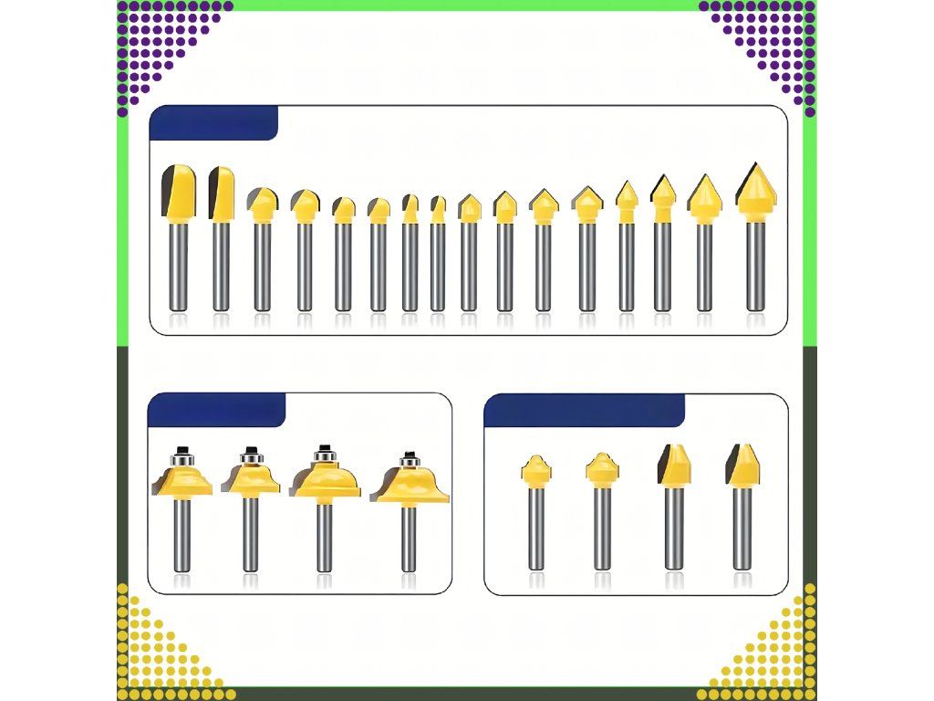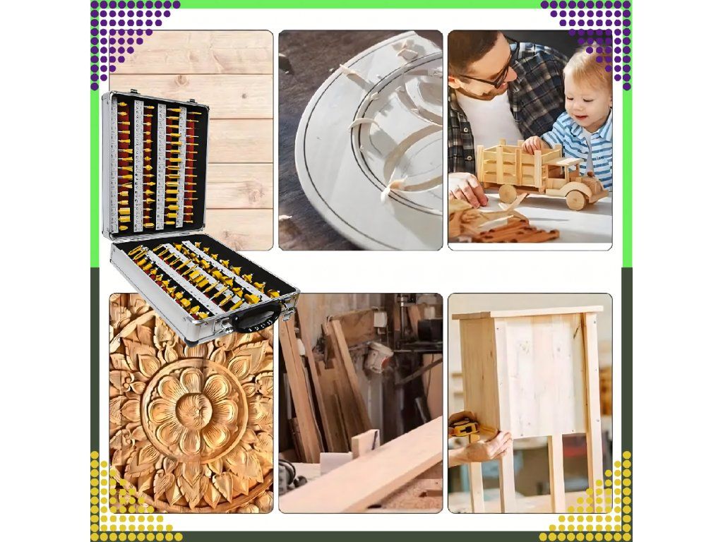 ✔️ Počet kusů: 100 ks fréz, min. pro: spoje, vyrovnávání, ozdobné prvky, drážky, zaoblení pro upevnění šroubů a další