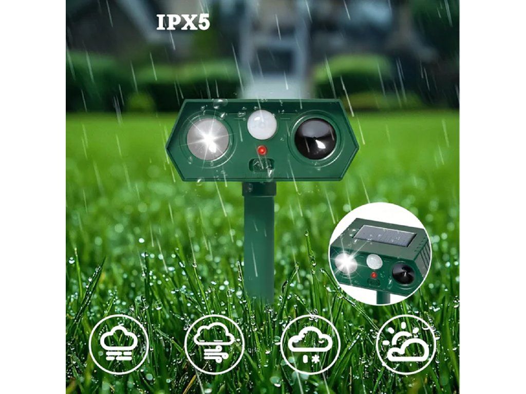 Tento solární ultrazvukový odpuzovač představuje účinnou, ekologickou a bezúdržbovou ochranu vašeho pozemku – 24 hodin denně, 7 dní v týdnu, bez chemikálií a bez ublížení zvířatům.