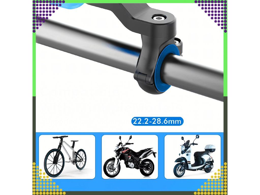 Držák se hodí na trubky o průměru od 22,2 do 28,6 mm, díky čemuž je kompatibilní s mnoha jízdními koly, motorkami, čtyřkolkami a dalšími vozidly.