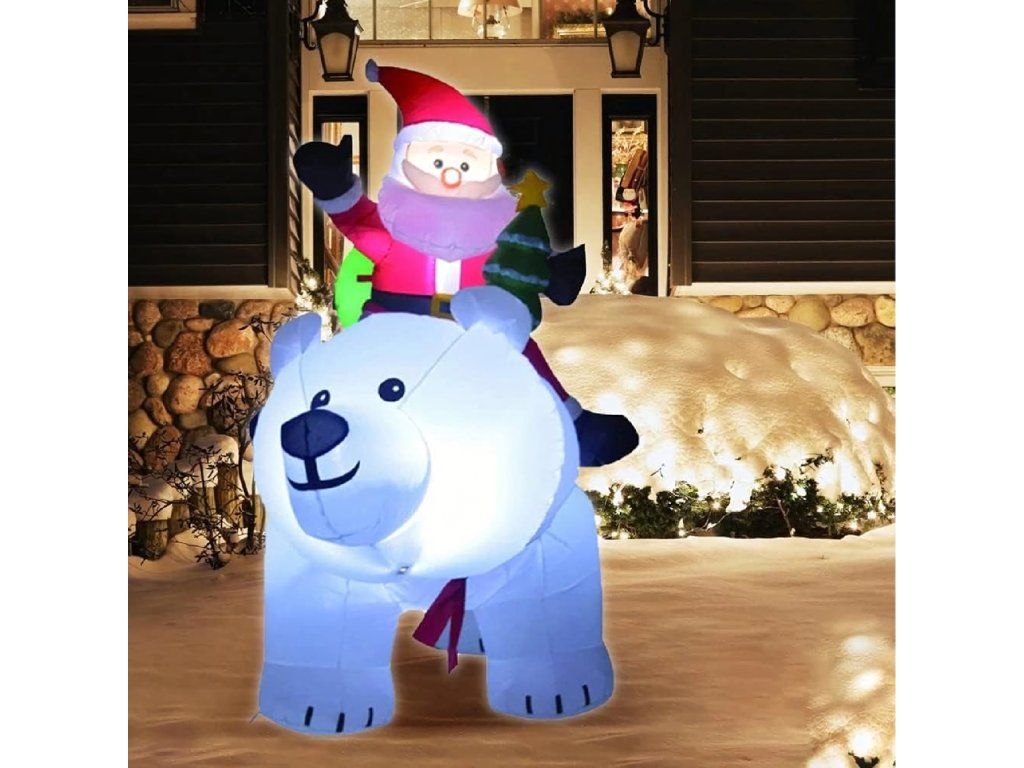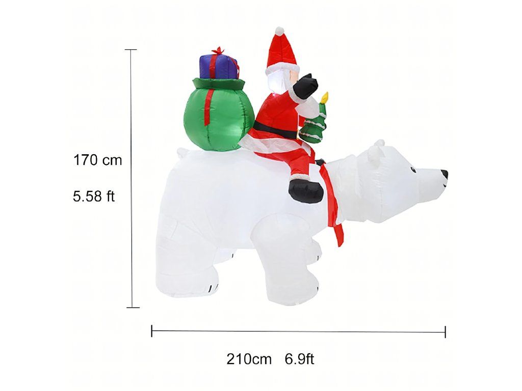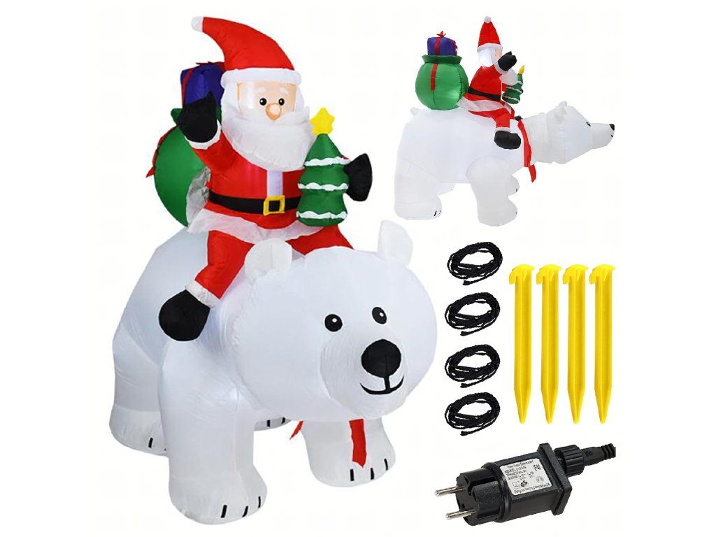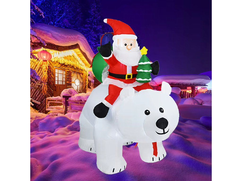 Vánoční dekorace Nafukovací Santa Claus na medvídkovi LED XXL 210 cm