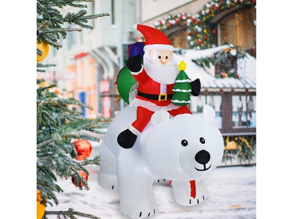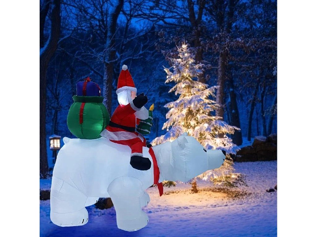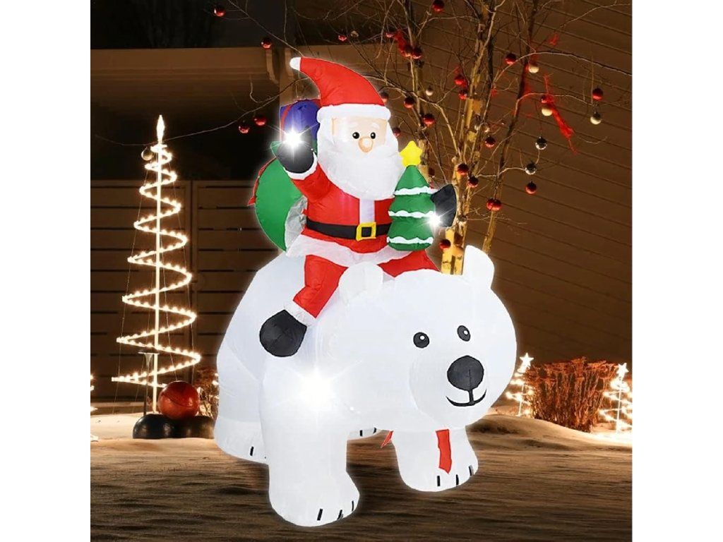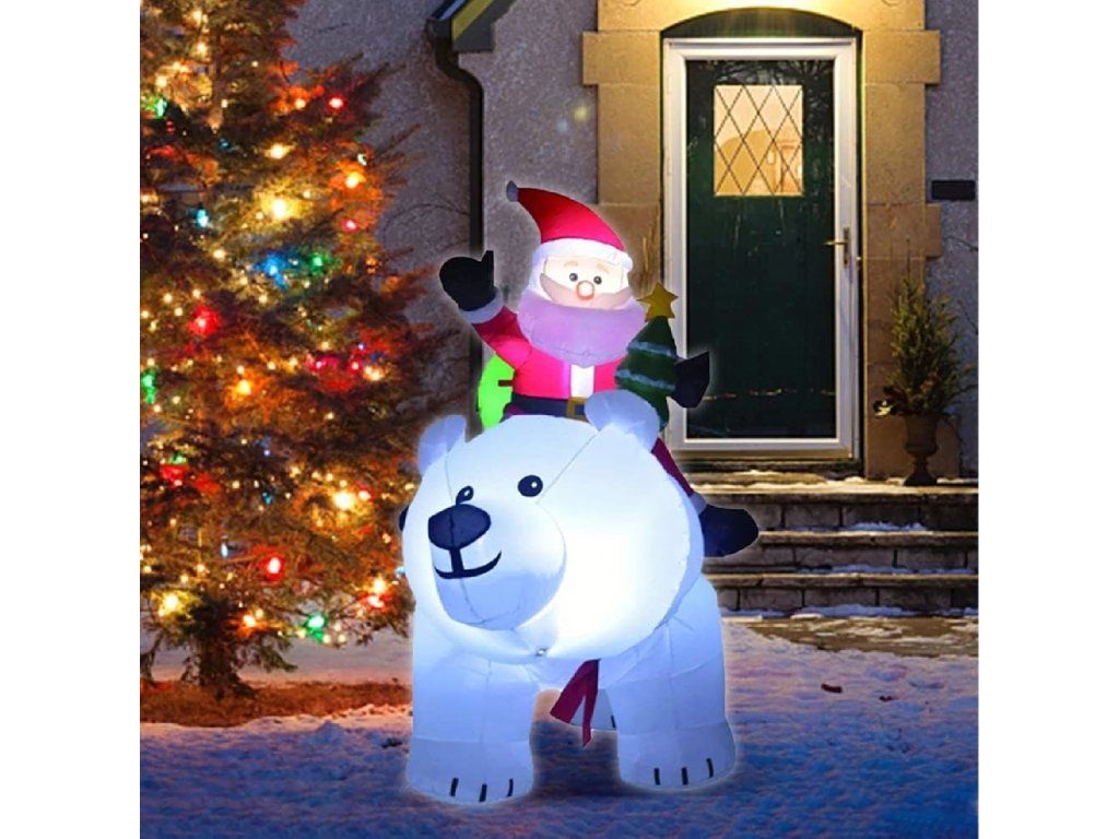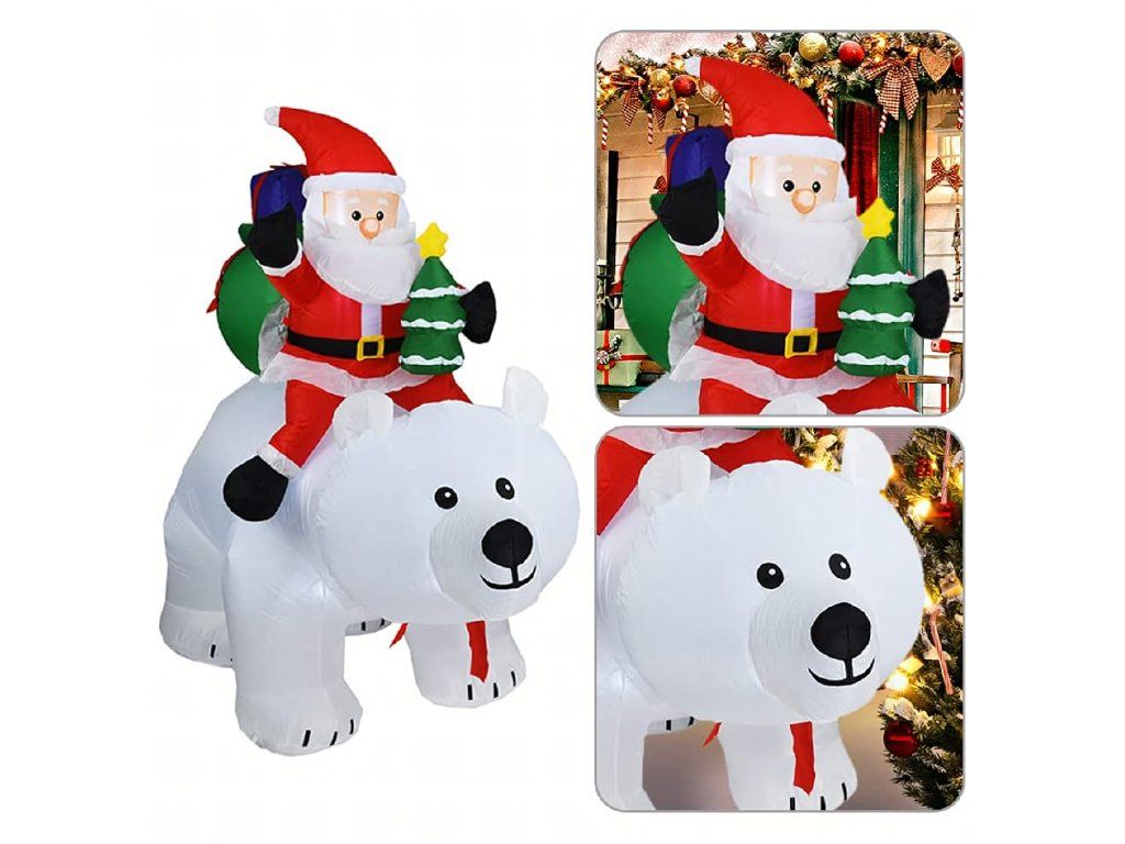 Vánoční dekorace Nafukovací Santa Claus na medvídkovi LED XXL 210 cm