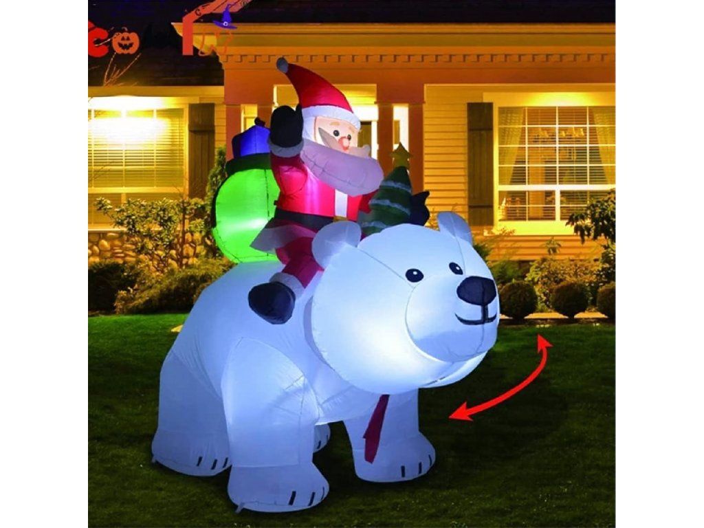 Nafukovací medvídek se Santa Clausem LED XXL 2,1 m je jedinečná, odolná a efektní vánoční dekorace, která promění vaši zahradu nebo dům v pohádkovou vánoční říši ✨