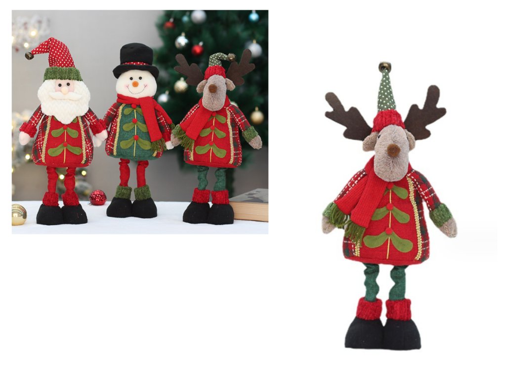 Vánoční dekorace SANTA CLAUS, SNĚHULÁK NEBO SOBA stojící na teleskopických nohách 50-35x20 cm ZELENO-ČERVENÁ