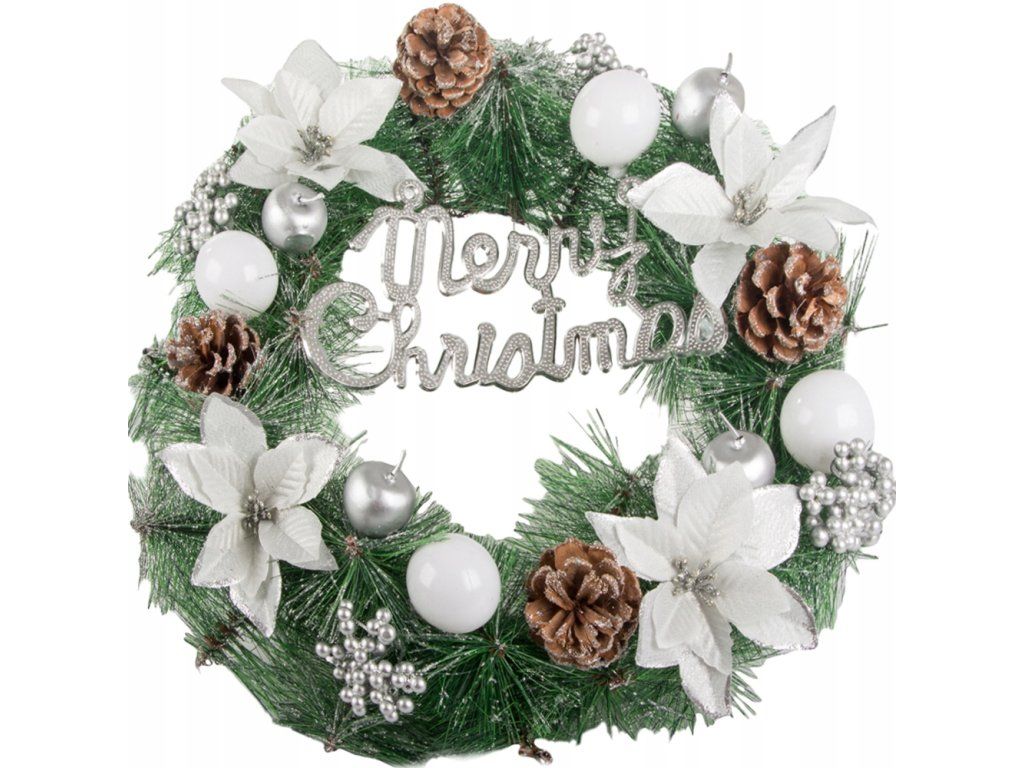 Vánoční věnec Merry Christmas, 40 cm, stříbrná