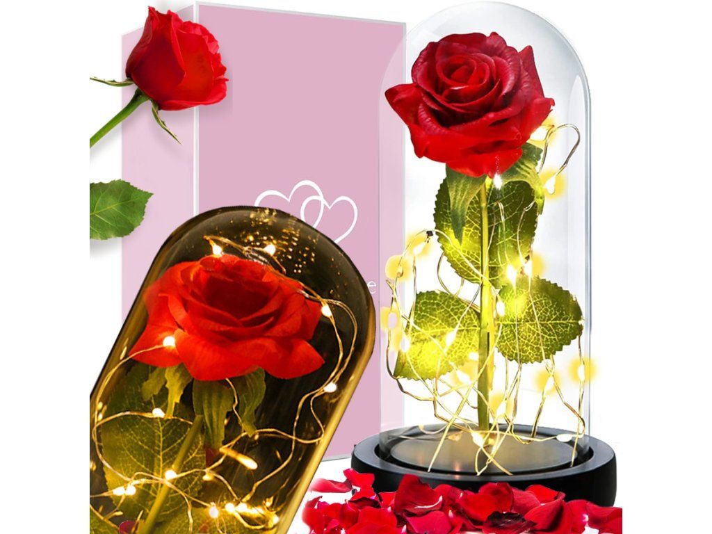 ☑️ Tovární nová věčná růže ve skleněném stínítku LED.