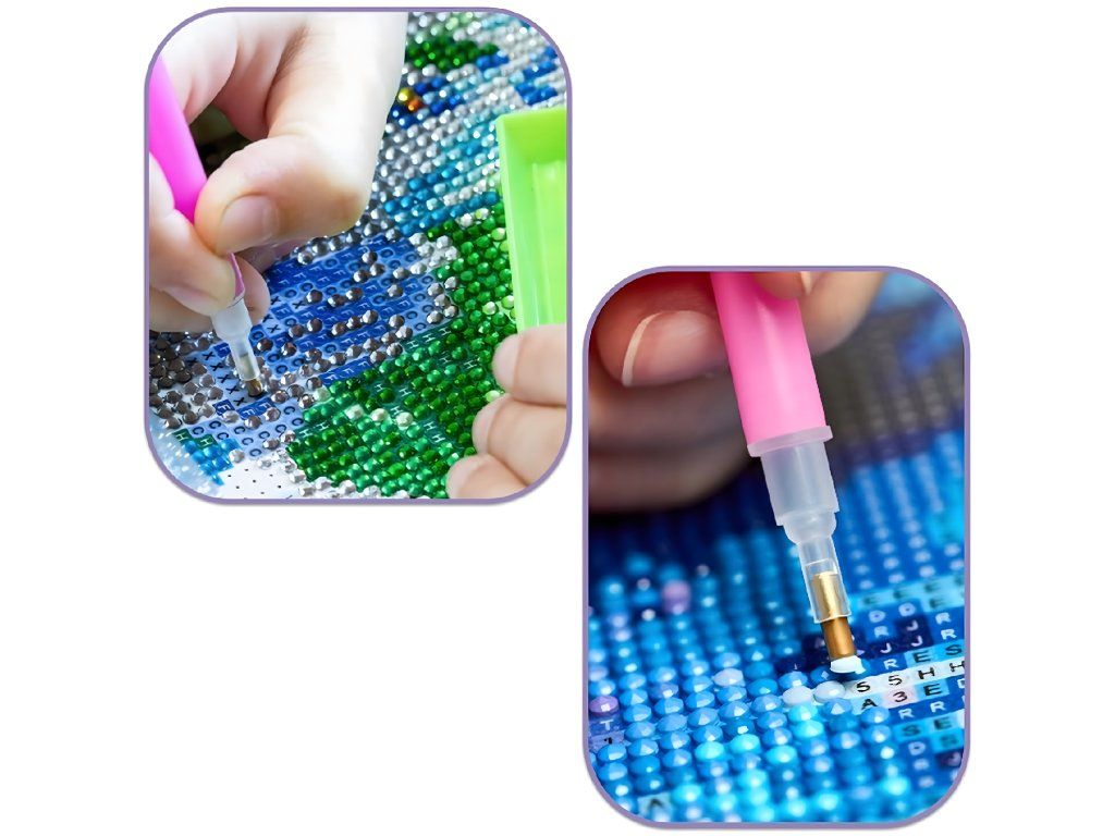 Součástí sady je aplikátor, který umožňuje snadné nanášení kamínků na plátno. Tento nástroj zaručuje přesnost a preciznost při práci.