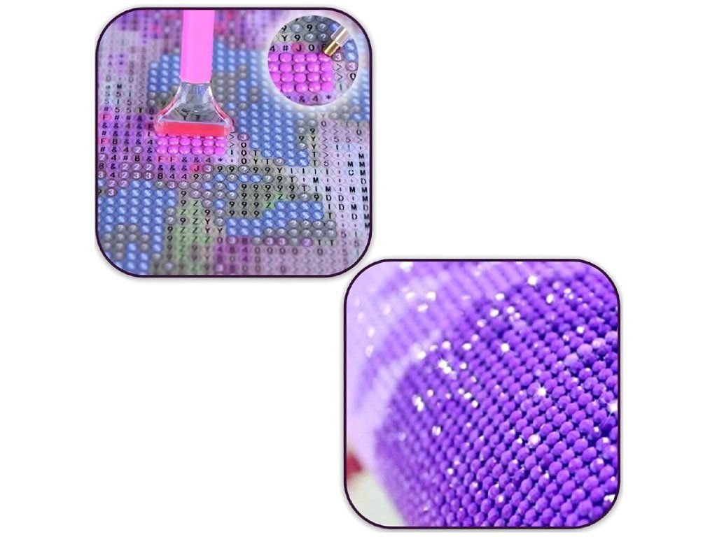 Sada obsahuje: obraz a veškeré nezbytné příslušenství pro provedení diamantové výšivky :