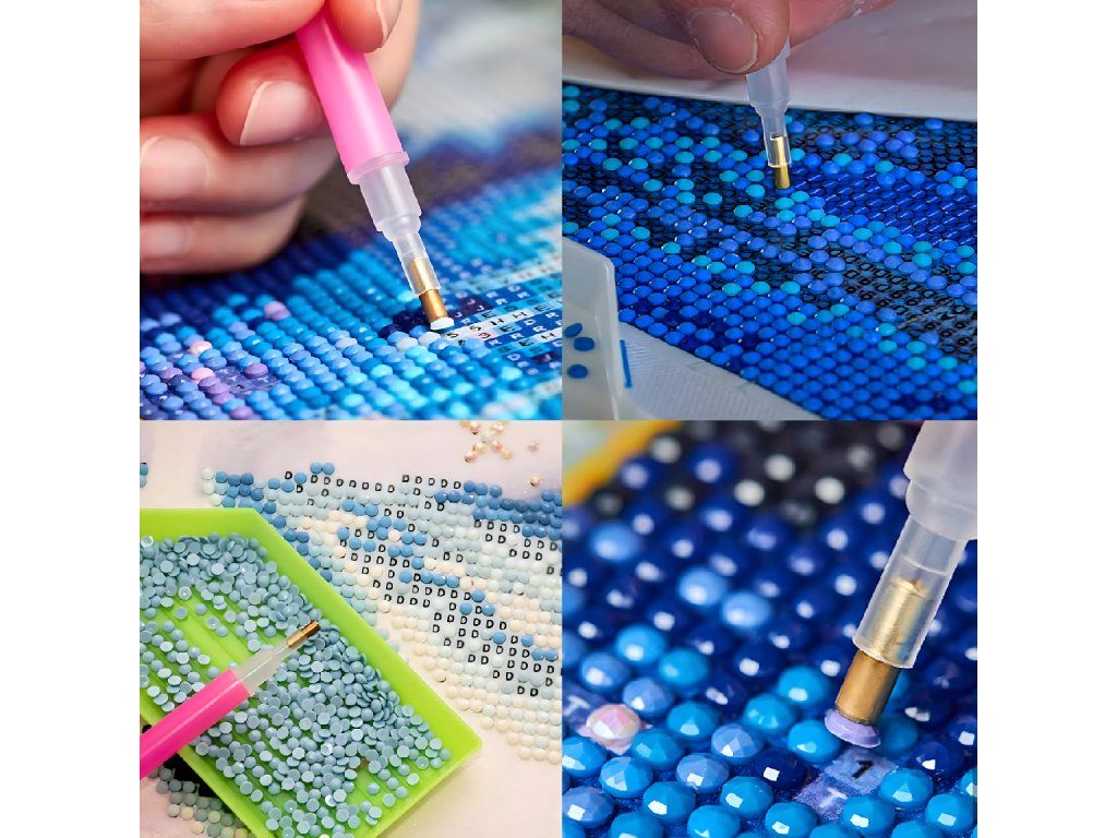 Součástí sady je aplikátor, který umožňuje snadné nanášení kamínků na plátno. Tento nástroj zaručuje přesnost a preciznost při práci.