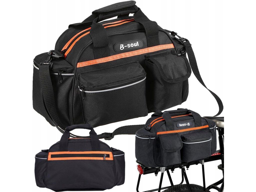 Brašna na nosič kola je nepostradatelným doplňkem každého cyklisty, který si cení pohodlí a funkčnosti. Je vybavena jednou velkou hlavní přihrádkou a umožňuje uložit větší předměty, jako je náhradní oblečení, lahve s vodou nebo jiné nezbytné příslušenství. Další čtyři vnější kapsy umožňují snadný přístup k menším předmětům, jako jsou klíče, peněženka nebo nářadí na kolo. Uvnitř brašny se nachází také malá kapsa, ideální pro uložení předmětů, které vyžadují zvláštní ochranu.