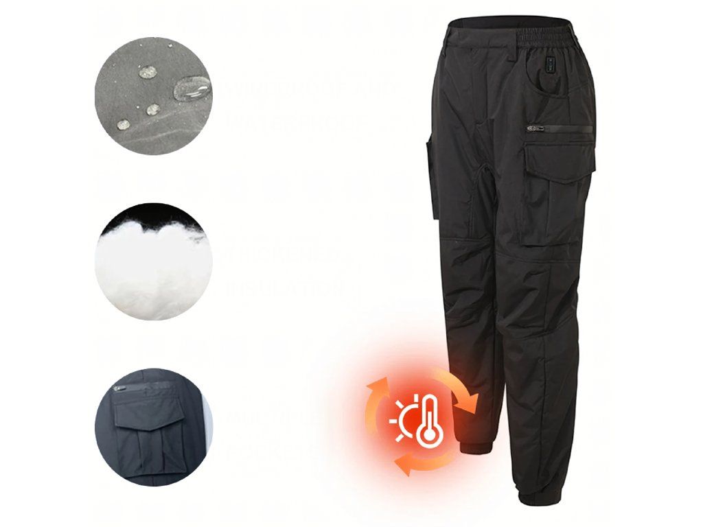 Vyhřívané kalhoty USB Voděodolné cargo kalhoty Powerbank Zimní