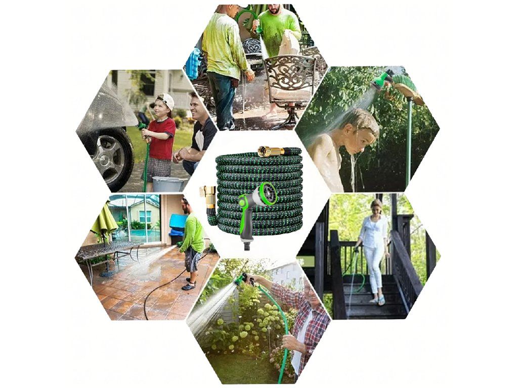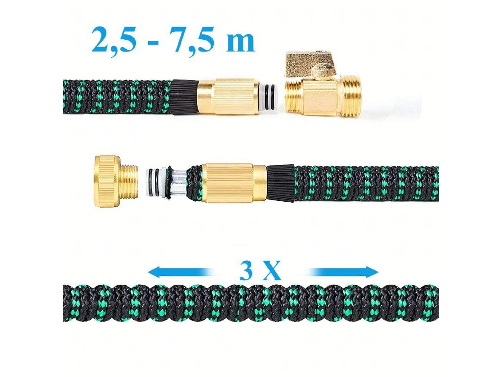 Zahradní hadice, roztažitelná 2,5–7,5 m, spojky 1/2, 3/4, pistole, zesílená, prémiová