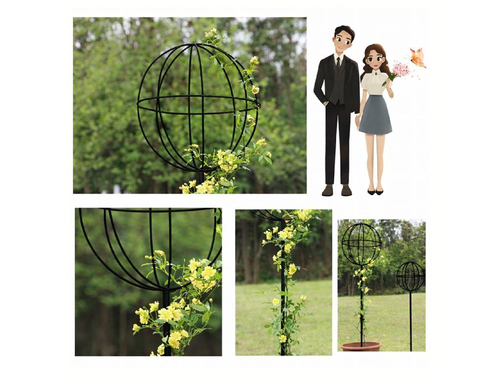 Zahradní pergola na terasu, kovová opora pro popínavé rostliny, růže a květiny, 50 x 10 cm, černá