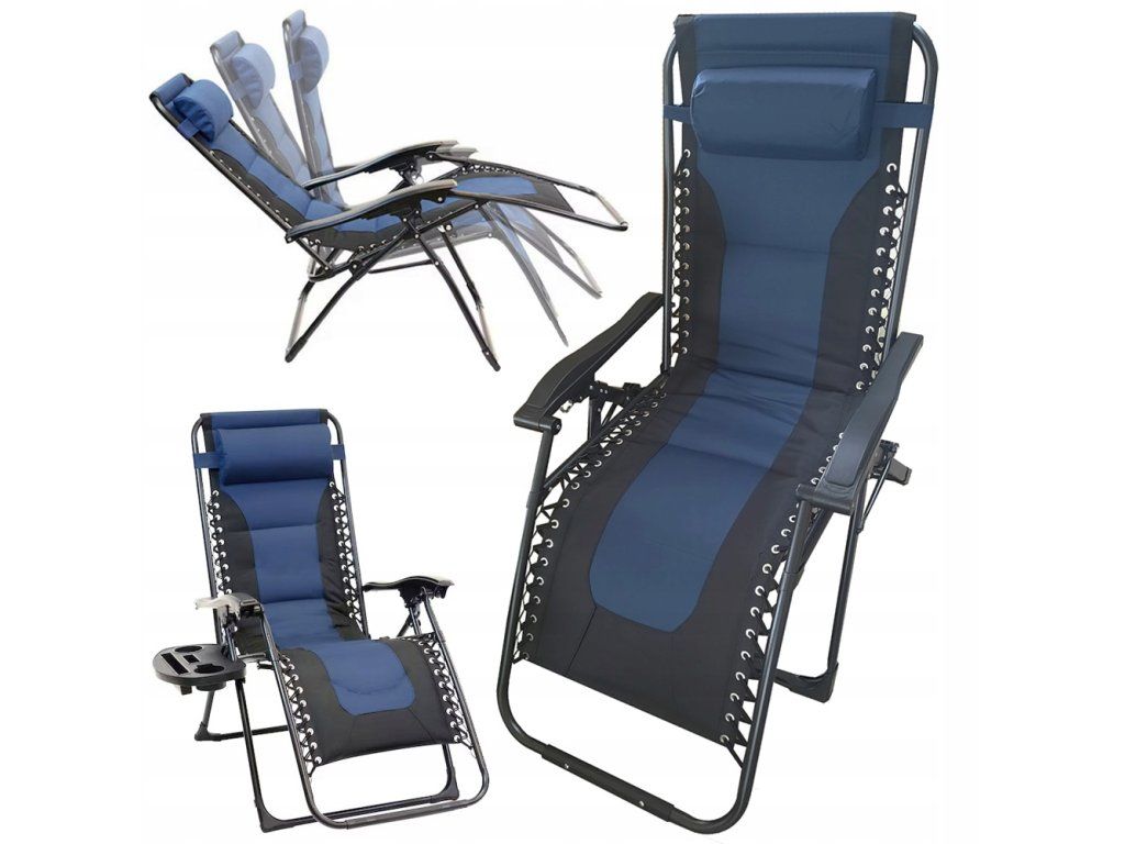 Zahradní lehátko s nastavitelnou polohou, měkké, skládací, modré