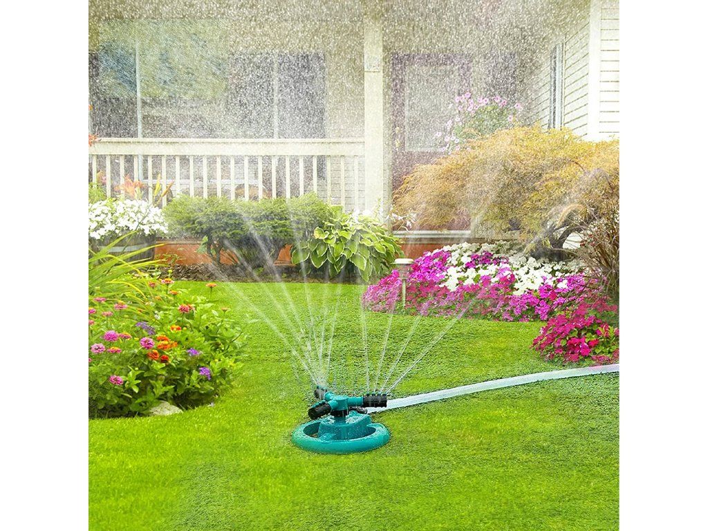 Zahradní zavlažovač s 360° otáčením a třemi rameny pro zavlažování trávníku a zahrady