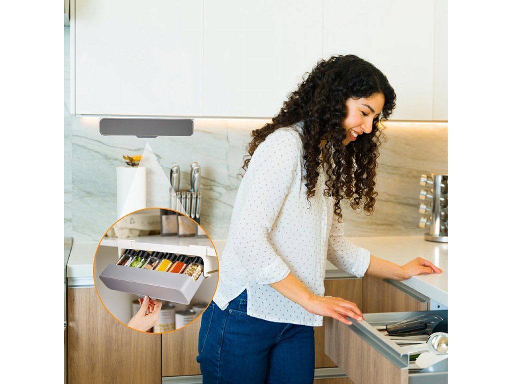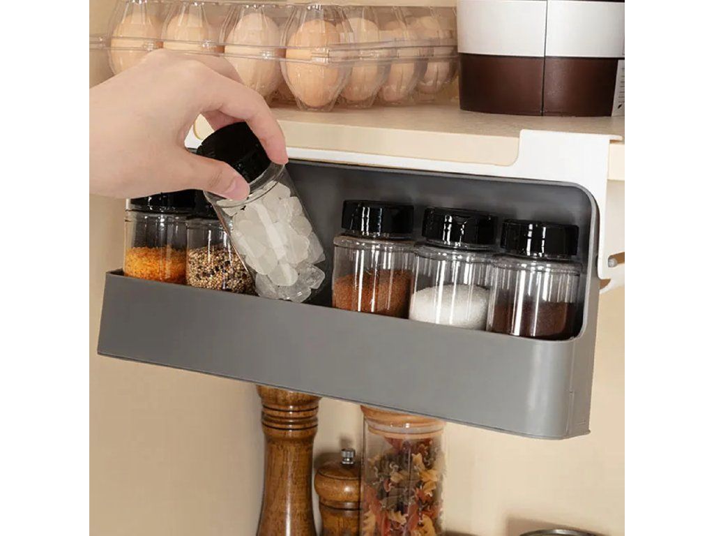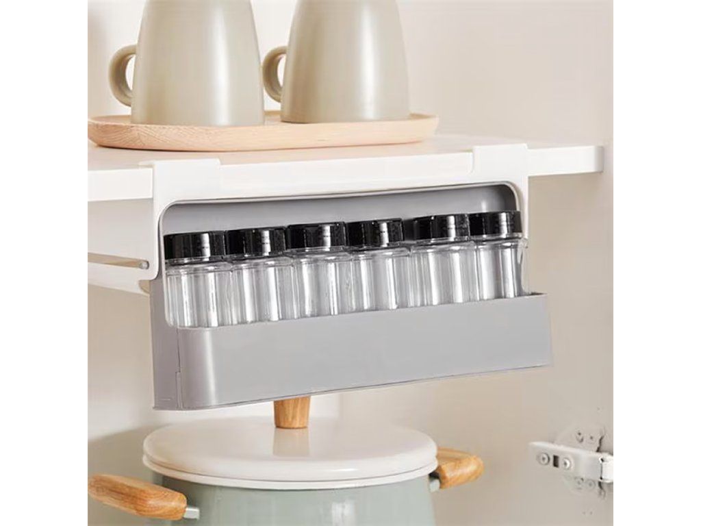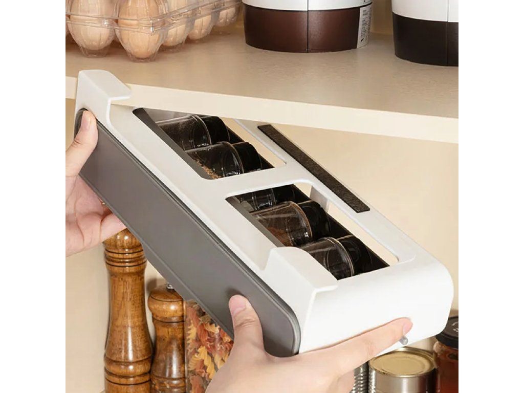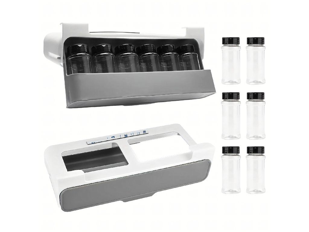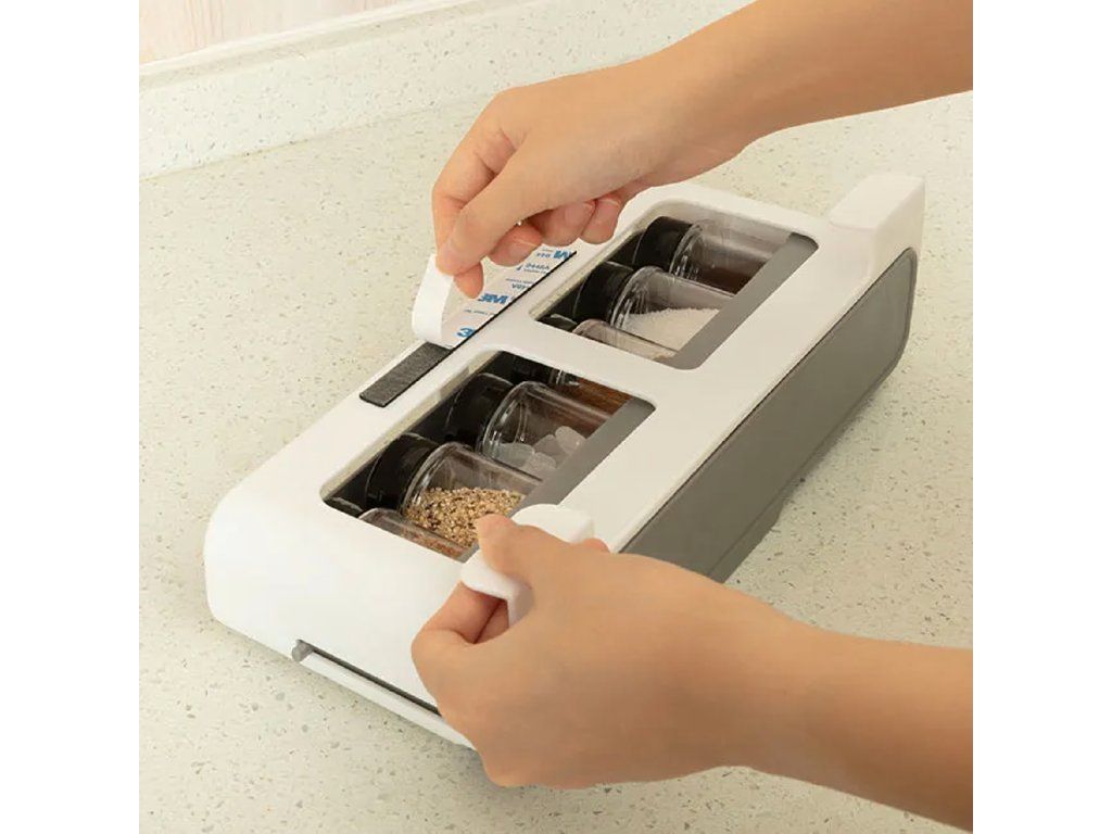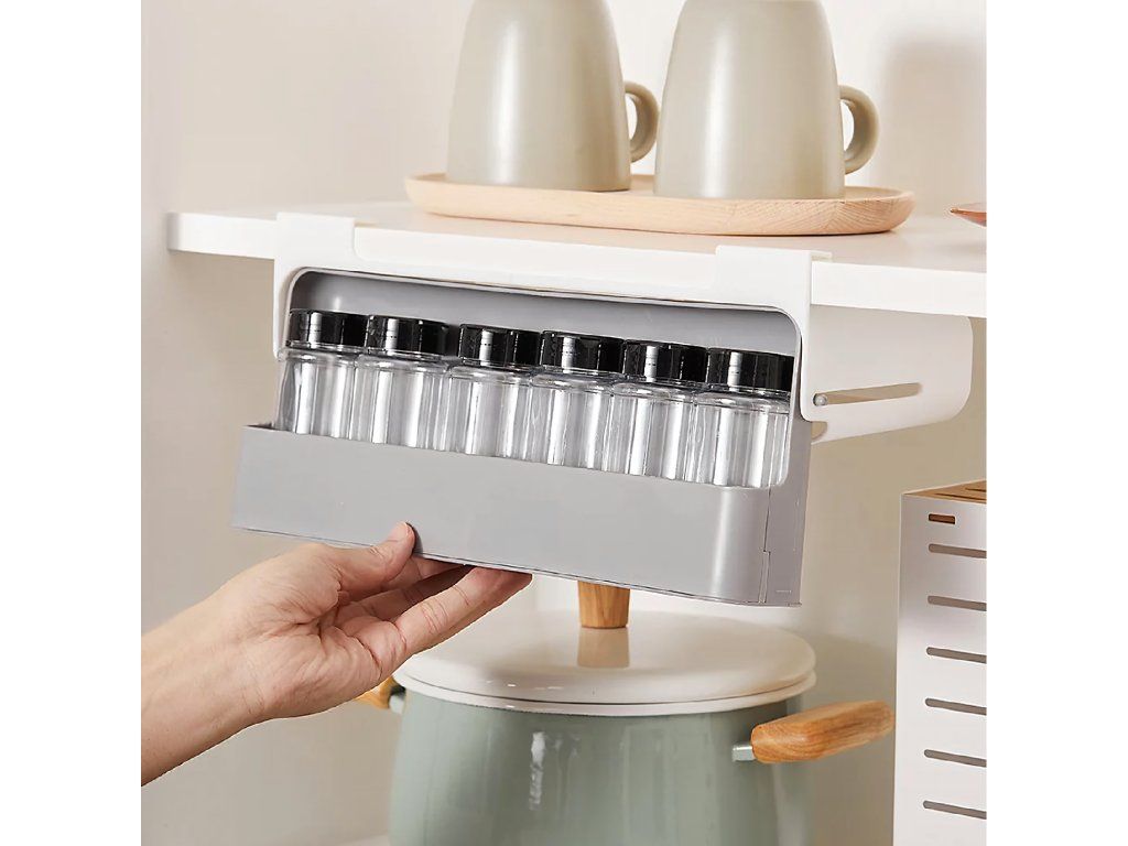 Organizér do zásuvky na koření se 6 sklenicemi. Maximální pořádek, minimální prostor – bez vrtání!
