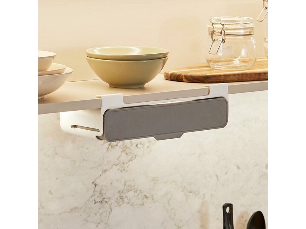Ano! Součástí balení je silná páska 3M – stačí ji nalepit na přepážku skříňky. Doporučená tloušťka je max. 2 cm.