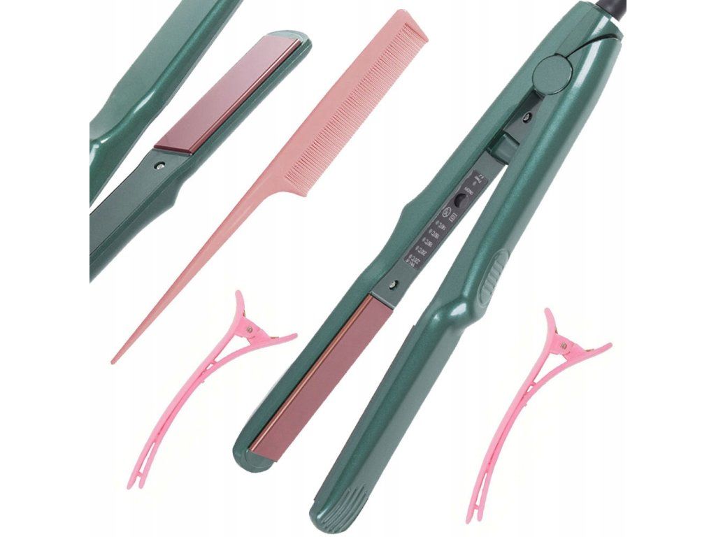 Žehlička na vlasy s regulací teploty, hřeben, 2x skřipec, zelená