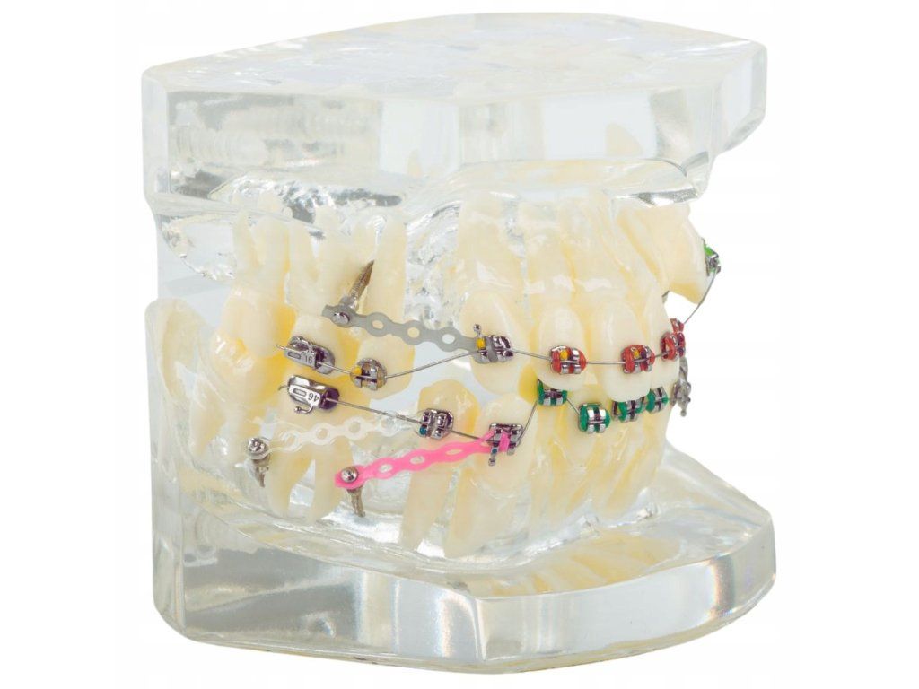 Zubní model čelisti je realistická replika chrupu, která slouží jako vynikající výukový a demonstrační nástroj. Díky detailní reprodukci zubů a rovnátek umožňuje demonstraci a výuku související s ústní hygienou, ortodontickou léčbou a všeobecným zubním lékařstvím.